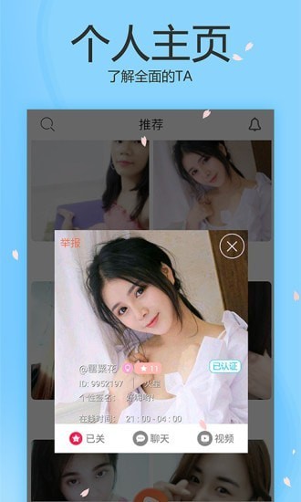 每次陪伴都是真心!视频和证件、照片真实比对认证,选出高颜值用户,更有三围资料,保证前凸后翘。