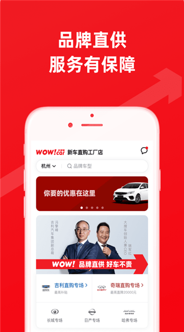 大搜车wowcar新车直购工厂店,以“品牌直供,好车不贵”为品牌理念,致力于携手各大汽车品牌,打造新车直购工厂店,汇集百款品牌车型,让品牌好车通过大搜车wowcar直达顾客;同时实行全国一口价,价格更透明更优惠,创造更实惠、省心的汽车消费体验与服务。