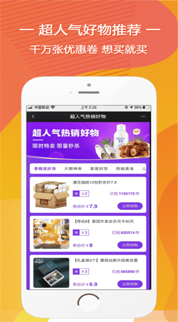 千惠快报安卓版预约是一款优惠省钱购物软件,精选海量优质好货,丰富大额优惠券领到手软,在线下单立减优惠,买到就是赚到,先买先省钱,感兴趣的朋友就来单机8下载体验吧!