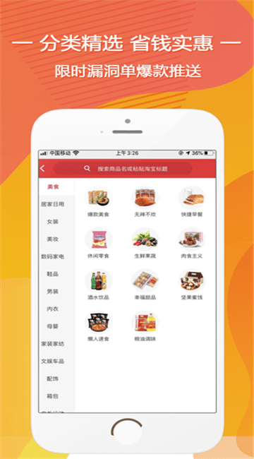 3、支持全网大部分平台,包含了女装、美妆、美食、居家、内衣、鞋包、母婴、数码、男装等各类商品的优惠券,给广大网友忙碌