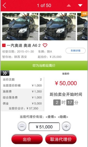 “竞拍成功”-查看成交车辆,办理付款提车过户