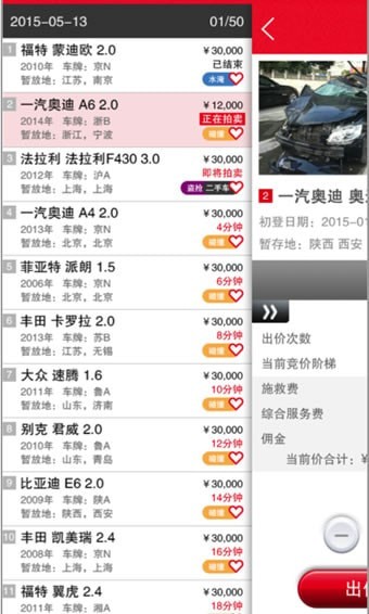 “竞拍失利”-查看失利车辆,总结竞拍经验