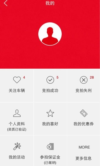 6.“我的”--查看关注车辆、优惠券、资质认证、参拍保证金审核等信息
