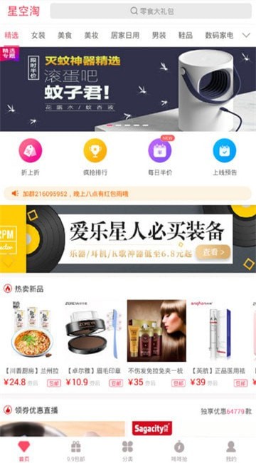 那么9.9包邮呢?没关系,你最想要的9.9包邮,星空淘当然也备好啦!精选商品,超值低价,9.9全场随选随购。