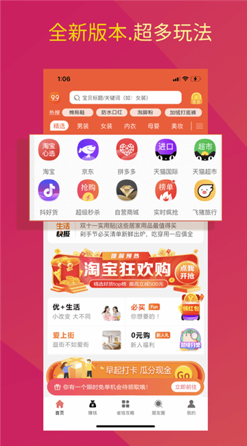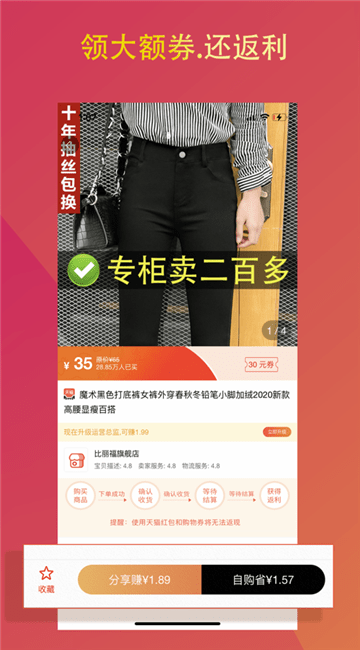 【1元包邮】领取大额优惠券,返利购物1元起;
