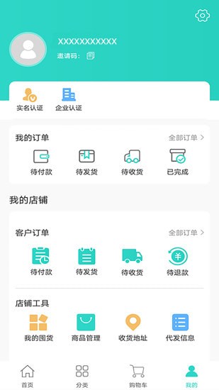 5、进入个人界面,及时进行实名认证、企业认证以及店铺管理