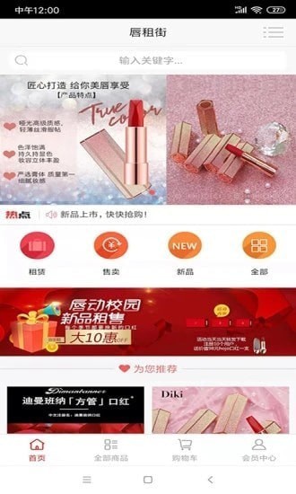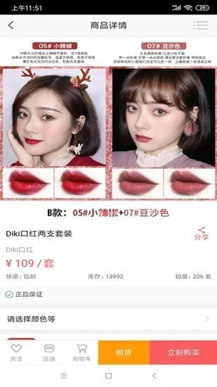 唇租街是一款旨为于小仙女服务的口红购买及租赁平台,在这款软件中用户可以见到许许多多让人心动的口红,让人眼花缭乱的口红型号,还有让人小鹿乱撞的色号,能够满足小姐姐对口红的欲望;遇到喜欢的口红即可一键在线购买,还能够在线进行租赁,平台上展示的图片都是真实的正品采样,并且照片清晰、没有滤镜,所有细节都能看的到,用户还可以看到口红的颜色、滋润度、持久度、大众评价等诸多信息,为用户购买用户参考;平台还提供租赁服务,以月或年为期限无限次换租,用少量钱可以把喜欢的口红带回家,非常实惠。