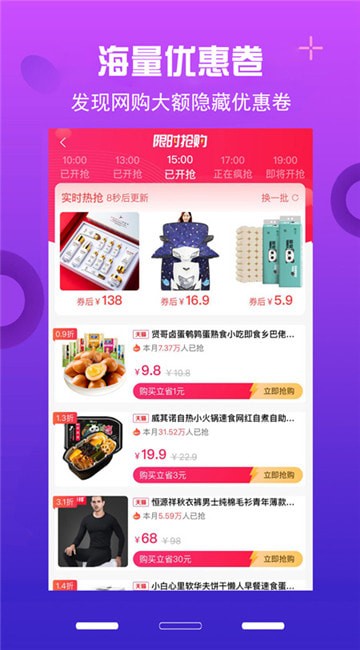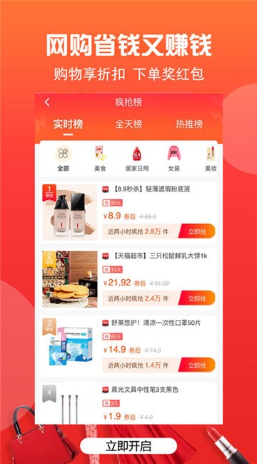 每天都有多个一元秒杀的活动,而且9.9就能买到精选好物还包邮,抢到就是赚到;