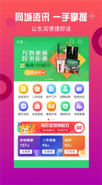 免费入驻查询、发布和浏览,房屋租售、二手买卖、招聘求职、汽车租售、宠物票务、餐饮娱乐,衣食住行、家居建材、装饰五金、商家黄页、旅游交友、餐饮娱乐、同城商家优惠促销活动等海量生活信息及服务。覆盖全国所有城市,各个领域,真实、高效、让您生活更简单!