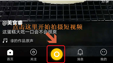 然后需要用手机号注册一个账号,接着在首界面点击下方的橙色按钮即可开始拍摄短视频了,如下图...
