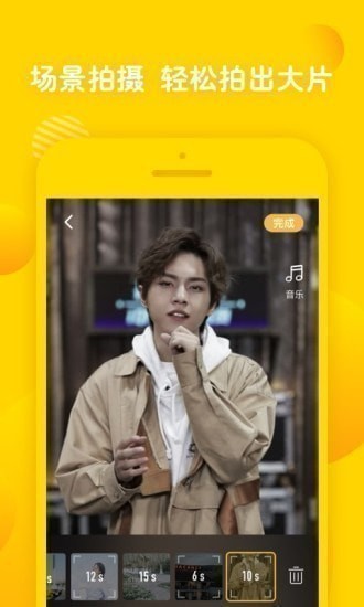 在拍摄界面,同样有着其他短视频APP类似的各种美颜、滤镜功能,如图一...此页面右下角就是“场景”选项了;