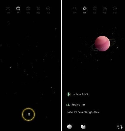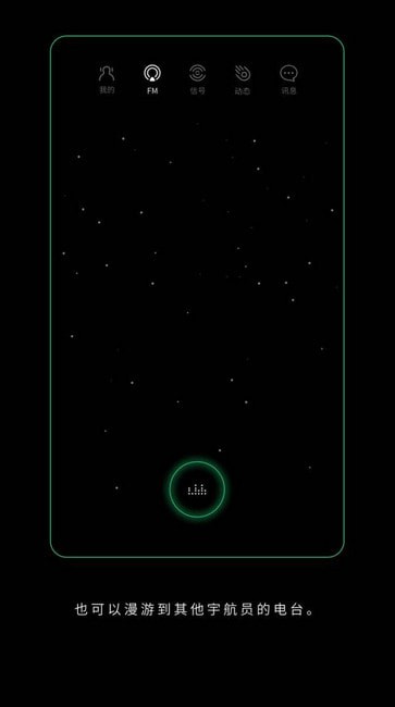 Space FM 模拟出了一个太空世界,每个用户都是宇航员。进入 Space FM 第一秒,就在漫天星空的黑夜里飘荡。点击下方的按钮开始一次航行,一阵「滋滋」的电波声响过,你就会漫游到其他宇航员的电台,听他的歌单,还有他发送的声音信号