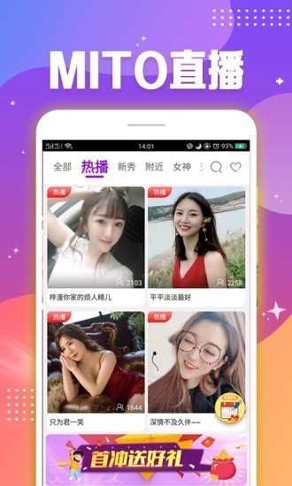 mito直播,炫酷的真人视频直播APP,这里有大量高颜值主播,实时互动、寻求围观,求打赏、求抱抱、求遇见,热辣萌妹子俊男提升你的尊贵体验,主人,快来展现你的雄风。在这里你都可以得到满足!