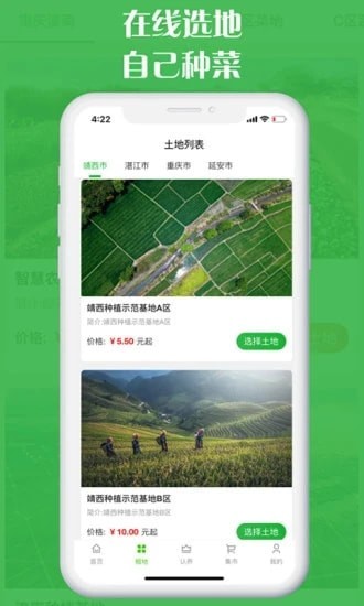 3、在应用中就能知道土地信息,并可以自行选择土地进行租赁;