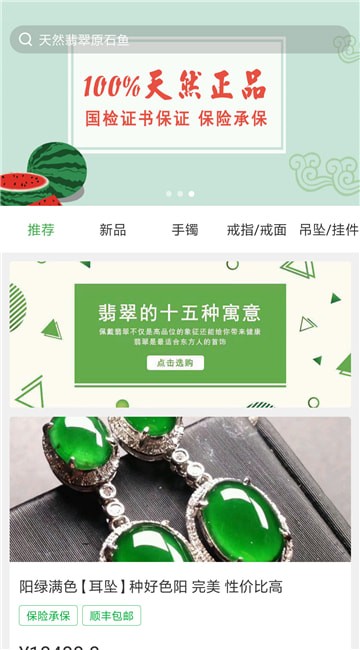 1、搜索功能,可以输入翡翠的名称,app就会为您找到对应的翡翠产品;