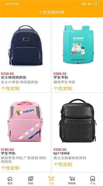3、个性化的定制服务,根据需要即可定制需要的包包外形以及颜色;