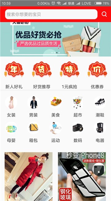 2、商品品类陈列清晰,选择就能得到热卖专场好物;