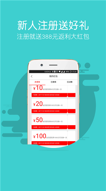 1、多种满减优惠券实时领取,红包使用状态实时掌握;