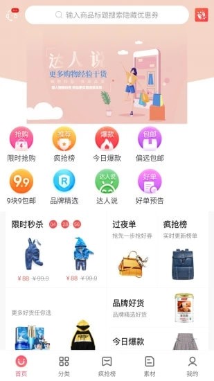 1、聚划算商品、淘宝月销过万商品,都能在这里领取优惠券来下单;