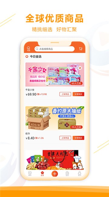 2、美妆、水果、服饰、美食等全球精选好货天天有,天天都会优惠购物;
