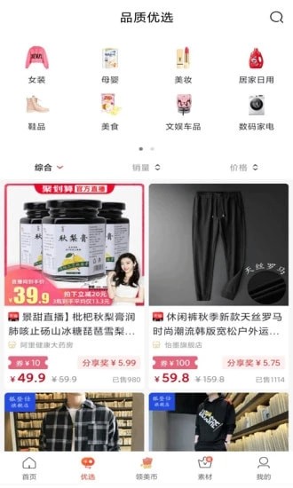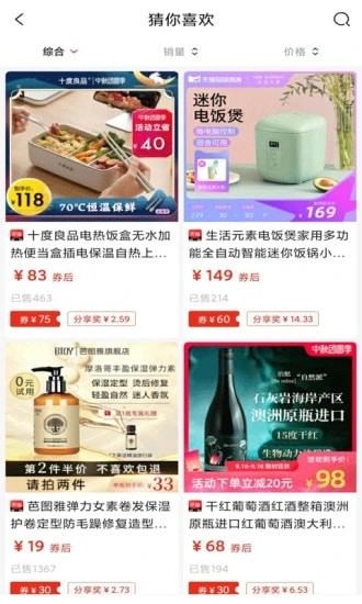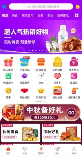 时尚服饰鞋包、美食、新鲜水果、潮流彩妆化妆品、品质又划算的居家用品、一线大牌、聚划算商品、淘宝月销过万商品,都能在这里领取优惠券。