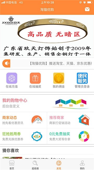 淘猫美购app是一款在线购物的省钱神器。淘猫美购app商品品类齐全,你想要的大众商品在这里都能找到,并且还能快捷获取优惠券,自己购买省钱,帮助你节省更多的资金。淘猫美购购物管理软件是一款用来进行在线购物操作的软件,该软件的主要功能包括:商品信息浏览、加入购物车、在线结算、送货地址配置等。帮助用户进行更加方便的购物操作。软件崇尚个性随意更换外观,让系统跟随用户的灵感来进行自定义操作。