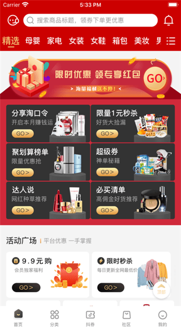 【十】9.9包邮专场、每日半价等特色专区低价好物等你来抢!