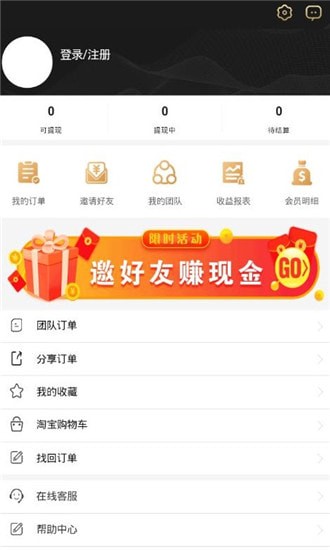 邀请好友注册,TA下单后商家会奖励你们45%佣金,好友越多返佣越多。