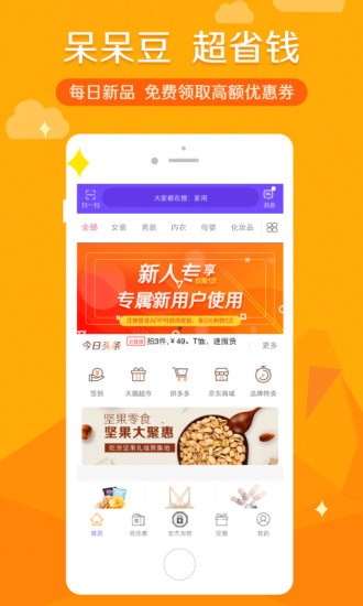 呆呆豆是一款功能非常优秀的掌上购物平台,软件内涵盖的商品资源非常的丰富,能够满足用户不同的购物需求。呆呆豆平台上面有各大购物平台的优惠券,能够降低用户的购物成本,有需要的朋友赶快来下载使用吧。