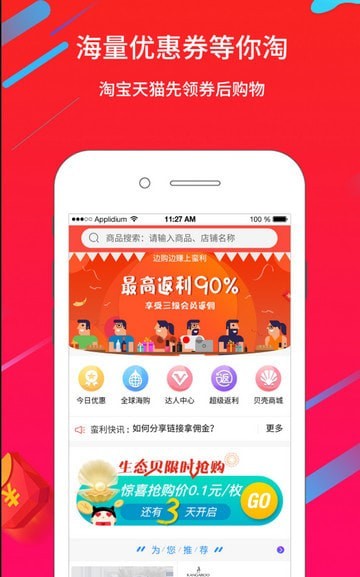 1、购物返利全网最低,保证您去淘宝京东等网购最低价的省钱助手;
