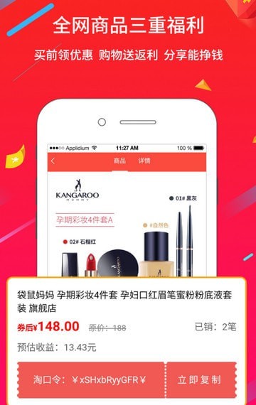 2.可查淘宝、天猫商品返利比例,方便比价。