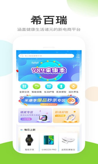 希百瑞app是一款非常好用的健康智能设备购买的掌上移动平台,软件内涵盖的设备资源非常的丰富,包括智能穿戴、健康护理等等,能够满足用户日常的生活需求,有需要的朋友欢迎下载使用。