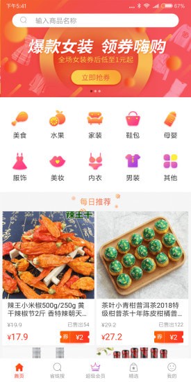 1.品类丰富:服饰、电器、居家、美妆、母婴、水果全覆盖,专注于找到合适你的商品。
