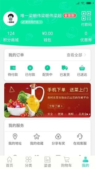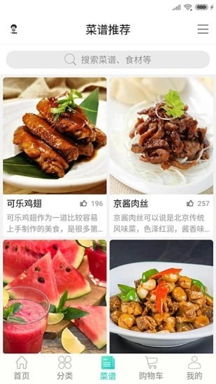 2、每个人可以自定义个人常用菜谱,可以根据采用菜谱一键采购生鲜食材;