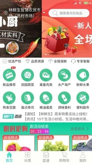 手机上的菜市场,买菜鲜人一步;“林鲜生”农贸市场自己运营的专业生鲜配送平台,为用户提供生鲜食材配送服务