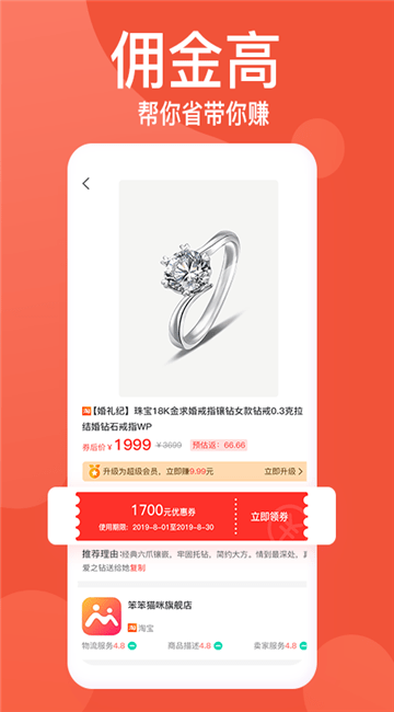 带来高佣金排行榜,查看商品返利详情;