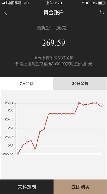 5、查看产品交易行情,轻松掌握此时的黄金价格,也帮助低价买入心仪产品;
