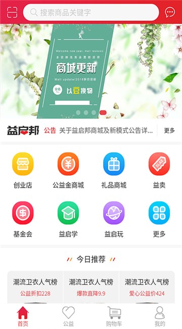 益启邦app能够为你创建一个公益电商商城,用户购买这里的商品就能为爱心公益活动奉献一份力量,既能够购物解决自己的生活需求,能够间接参与公益活动,可以实现物质精神双丰收。并且这个商城之内的商品非常丰富,各地特产、手工艺品和礼品、潮流服饰和生活用品等商品种类都能在这里找到和买到,并且这里有着一个公益金商城可以使用金币免费换购商品,丰富的礼品套装可以任你选择。除了购物之外,在这个app之中还有基金会、线上学堂和游戏版块可以体验,想要创业的人更是可以在线开店,自己的创业店能够在线实时管理,非常不错。