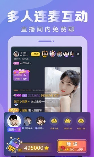 【玩的开放】:连麦,pk,秀歌技,秀才华,缤纷多彩的直播活动不停地播放。火辣的内容全天不间断!