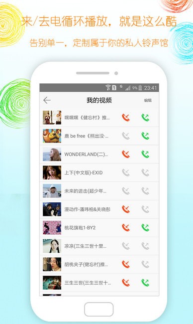『来/去电循环播放』 独有来去电视频库,视频铃声循环播放,来/去电均支持20首循环,新鲜!新鲜!就是新鲜!