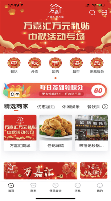 万嘉汇应用旨在为本地居民提供方便快捷的生活服务资讯,包括:团购、同城信息、外卖点餐、交友社区、互动社区等多个功能,以良好的服务切实的给大家提供生活服务方面的便利,从某种意义上达到惠万家的理念。