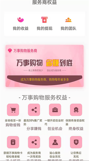万事购物app是一款省钱又赚钱的购物APP。万事购物app以大数据思维聚合了淘宝、天猫、京东、拼多多等线上购物商品数据,同时将线下流量向线上导流,线上流量向线下辐射,打通线上线下电商体系,基于会员制社交电商模式,为消费者实现购物折扣化。