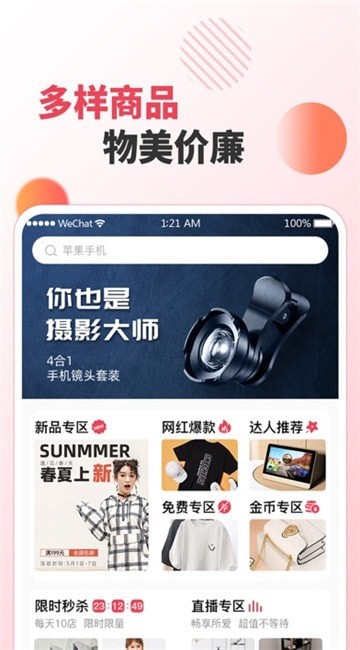 诸多的直播专区随时进入,看主播为你介绍优质好物;