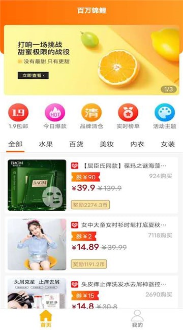 百万锦鲤最新版是一款手机在线购物软件,在这里为用户提供大量百汇、美妆、女装、男装等各种类型的商品,支持用户在线搜索商品信息,查找优惠券和分享获得奖励,帮助用户边买边赚,有需要的朋友快来单机8下载使用吧!