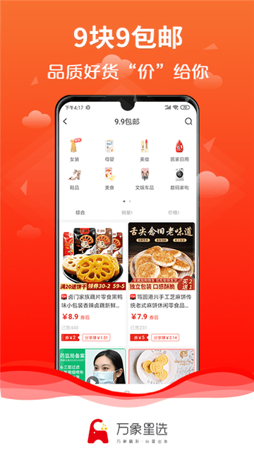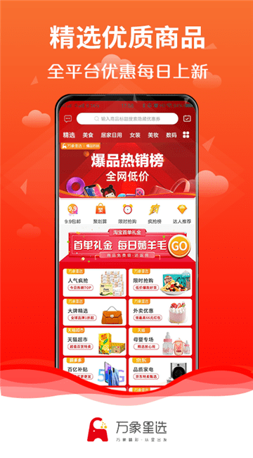 万象星选安卓版是一款手机在线购物软件,在这里精选各大平台优质优惠商品,每天实时更新,用户可以领券省钱购物,推广还可以赚钱,还有大量限时秒杀活动、9块9包邮等你来参与,有需要的朋友快来单机8下载使用吧!