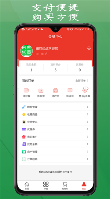 6、用户可以在线进行推广,推广给好友一起购物,自己还能赚取福利;