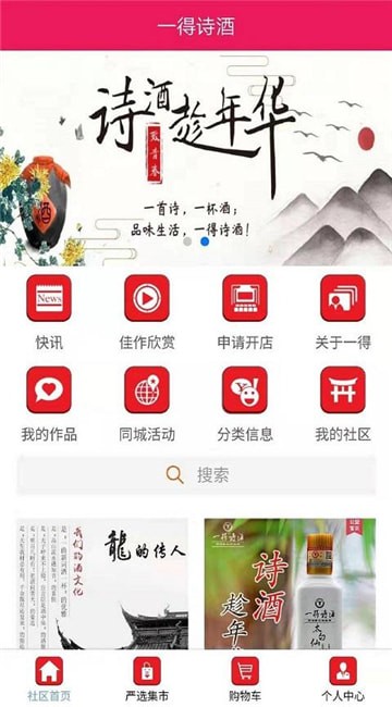 一得诗酒安卓版是一款购物应用,可以为消费者提供手机购物的便利,丰富的商品涵盖酒水、母婴和文化产品、健康食品等种类,想买的商品能够在此一一选购和搜索,在购物之外还能在此欣赏诗歌名作,能够一边品酒一边赏诗,任何人都能在此体验故人的诗会乐趣。实时的快讯、佳作视频欣赏和申请开店、作品管理等版块都能在首页之中发现,喜欢诗歌、饮酒的人可以在这里的社区之中进行互动,以酒会友、以诗会友都可以,志趣相投的人可以在此相互交流分享作品,每个人可以自选分类信息,本地各种信息资源都能在此找到,这样综合性的购物app赶快下载吧。