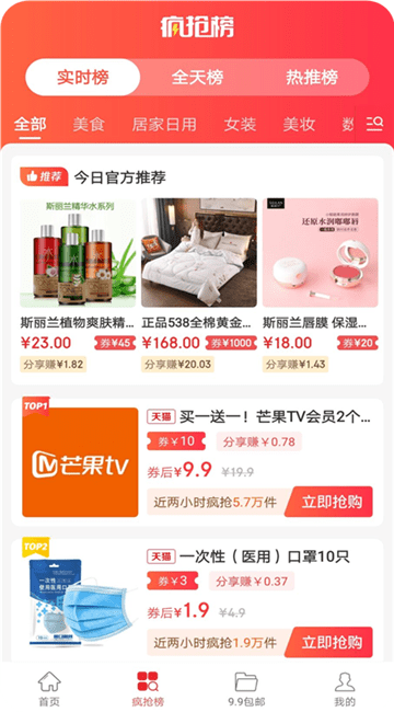 闺蜜分享app实时为你推送优惠商品,旨在为全民打造一个优惠导购平台,全网海量的优惠商品汇聚于此,在线可以自主选择商品种类、领取商品优惠券、分享商品,任意商品的详情信息一目了然,每件商品的佣金价格直接展露,可以在此进行分享商品赚钱的操作,高佣商品可以一键分享朋友圈。随时可以在线邀请好友分红,邀请的人越多则得到的分红越多,随时可以在线提现收益,可以及时解决需要用钱的问题。这款优惠购物app推送的商品自动生成了排行榜,实时榜、全天榜和热推榜的榜单变化可以第一时间了解,想要购物省钱就下载这个应用吧。