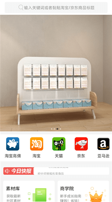 3、随时随地手机分享,实现从消费到创业的轻松转变,一键链接淘宝,天猫,京东、亚马逊、考拉海淘等各大电商平台,全球优品,一网打尽。