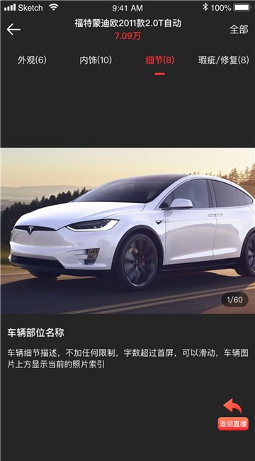 3、360°在线立体车况展示,包括外观、内饰、铭牌、损伤情况等,透明车况,真实详尽。